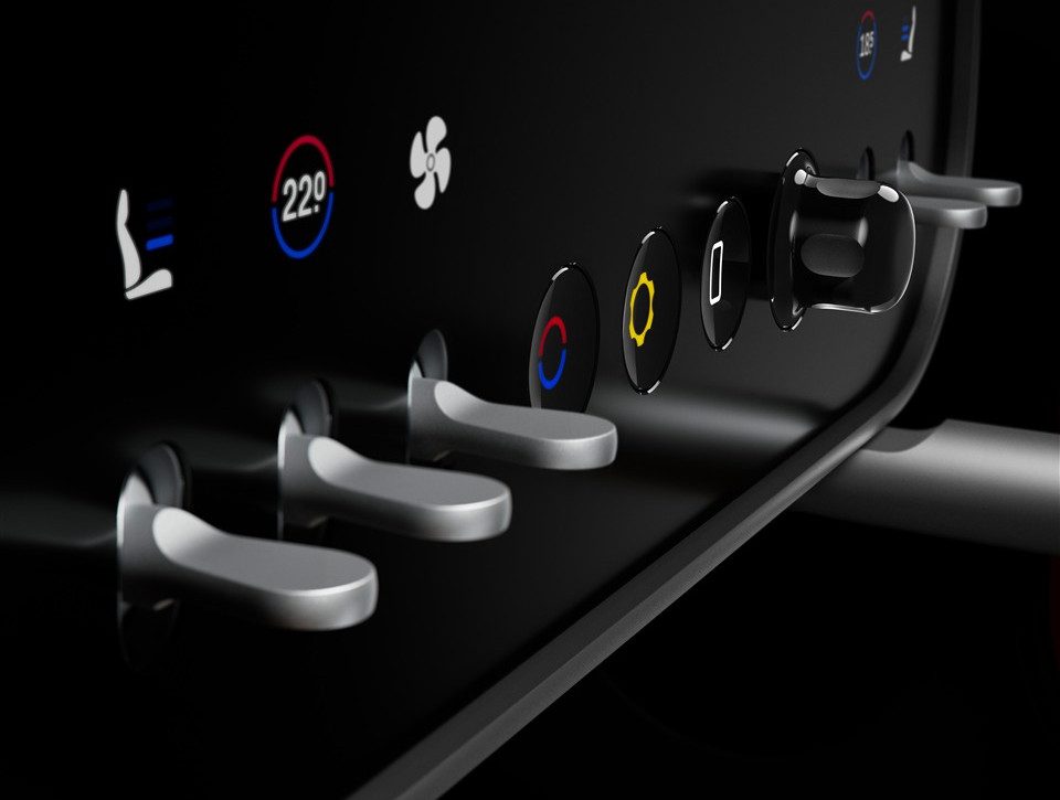 Ook onder het centrale scherm zijn meerdere knoppen te vinden. Deze zijn voor de verwarming, airco en het volume van de radio. De middenconsole bevat nog meer knoppen, zoals voor de ramen en de deurontgrendeling. Het geheel oogt opgeruimd en netjes. Er is zeker een link met Apple te maken, dus de handtekening van Ive is duidelijk. Hij en zijn partner hebben er echter geen digitaal wonderland van gemaakt. Hierdoor is het interieur Ferrari-waardig en is het een duidelijke aanwijzing dat al die schermen in auto’s over hun hoogtepunt heen zijn.