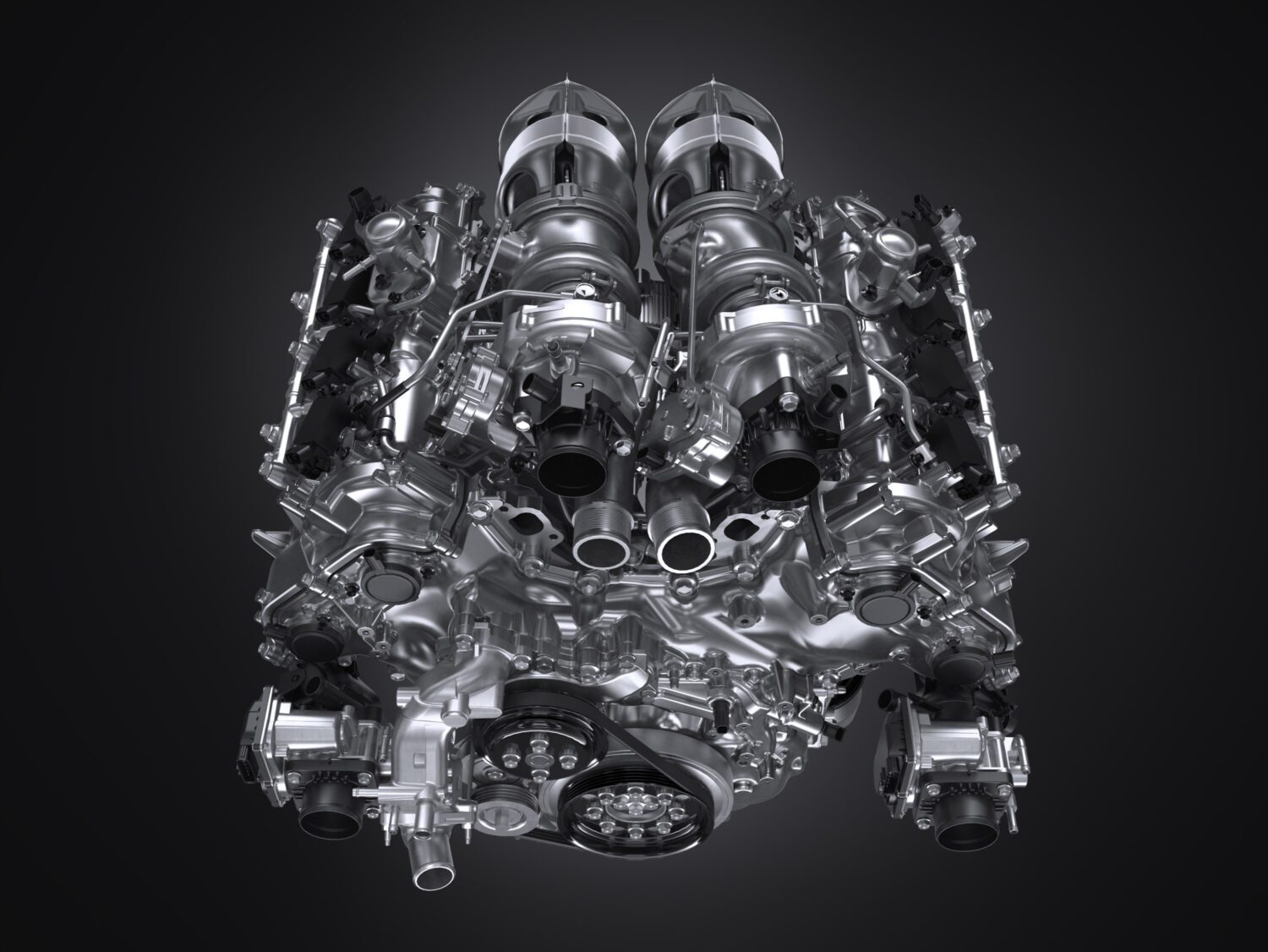 De engineers begonnen het project met één doel: Een zo laag mogelijke bestuurder. Zodoende is de V8 dan ook ontworpen: volgens een “compact en licht” concept, met een korte slag (bore × stroke 87,5 × 83,1 mm), waardoor de totale hoogte van de motor beperkt blijft. Cruciaal voor het lage zwaartepunt. Daardoor ligt niet alleen de auto laag, maar jij ook. De cockpit is ontworpen met coureurs, met perfecte zichtlijnen, compacte bediening en een gevoel van eenheid dat je normaal alleen op een circuit vindt. Carbon-keramische remmen, Michelin Pilot Sport Cup 2’s en een volledig aanpasbaar Vehicle Stability Control-systeem maken het af.
