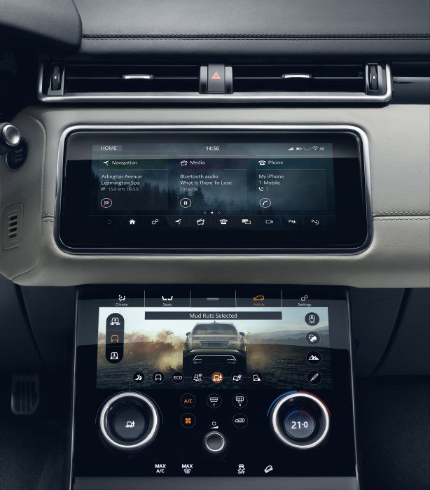 Maar deze Velar is niet alleen een oude muscle car, maar ook een zeer luxueus modern vlaggenschip. Het toch al indrukwekkende interieur van de Velar is voorzien van geperforeerd en dubbel gestikt Windsor-leer, verkrijgbaar in vier kleuren. De voorstoelen zijn maar liefst op 20 manieren te verstellen en zijn voorzien van ventilatie, verwarming en een massagefunctie. Een uniek sportstuur en koolstofvezel-details maken het beeld compleet.
