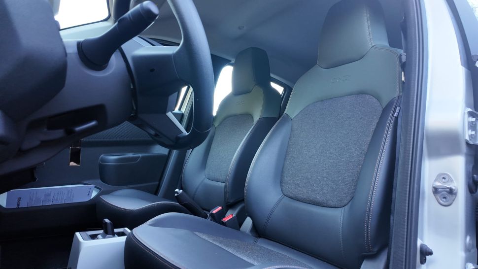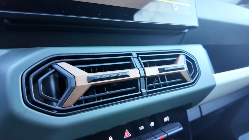 Het interieur van de Dacia Spring is eenvoudig, maar slimmer vormgegeven dan voorheen. De gebruikte materialen voelen niet luxe aan, maar door kleuraccenten op sierdelen en ventilatieroosters oogt het geheel netjes en verzorgd.