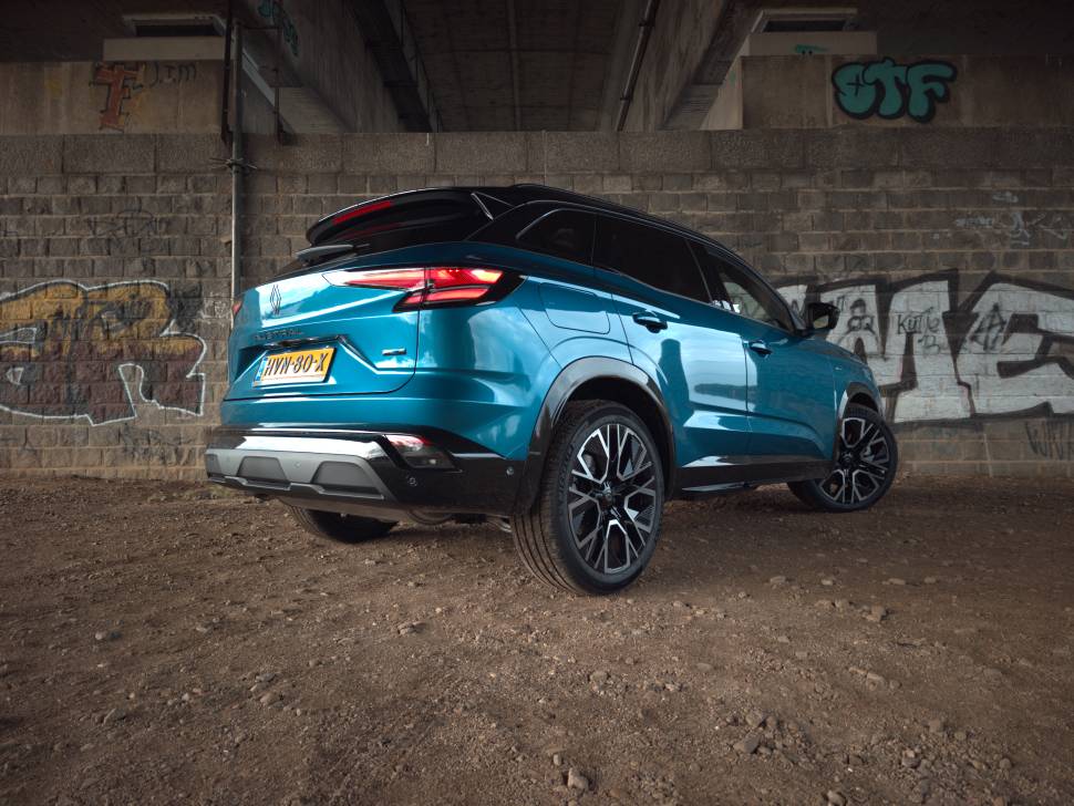De draaicirkel is extreem klein dankzij de uitstekend werkende vierwielsturing. Met slechts 10,1 meter is hij kleiner dan bij veel concurrenten: een Hyundai Tucson heeft 11,4 meter nodig, een Ford Kuga 11,6 meter. De Austral komt dus dichter bij een Toyota Aygo X (9,6 meter) dan bij zijn daadwerkelijke rivalen. Daardoor laat hij zich parkeren alsof het een veel kleinere auto is. Zelfs de grootste Franse-autohater vindt dat gewoon prettig. De Nederlandse overigens ook, hier hoef je geen Fransoos voor te zijn.