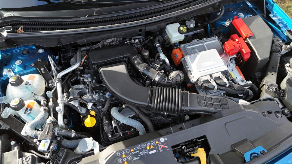 Wanneer de verbrandingsmotor wél meedoet, merk je dat meteen. In koude toestand ontwaakt hij vrij luidruchtig, en ook wanneer alles op bedrijfstemperatuur is, blijft hij, anders dan andere benzinemotoren, opvallend hoorbaar. De 1,2-liter driecilinder klinkt alsof hij erg hard aan het werk is. Dat roept de vraag op hoe efficiënt en slijtvast dat allemaal is.