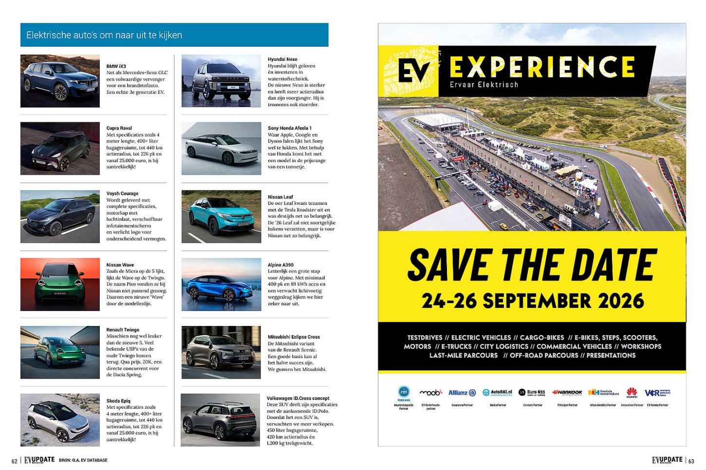 Tijdens de EV Experience op Circuit Zandvoort, van 2 tot en met 4 oktober 2025, presenteert EV Update het eerste nummer van het EV Update magazine. Het nieuwe blad volgt na vijf edities het bekende EV Jaarboek op en is volgens de redactie een logische stap in een markt die te snel verandert voor een jaarlijkse uitgave. De timing van de lancering is bewust gekozen: bezoekers kunnen het magazine gebruiken als gids terwijl ze op het circuit de nieuwste modellen zien en testen.