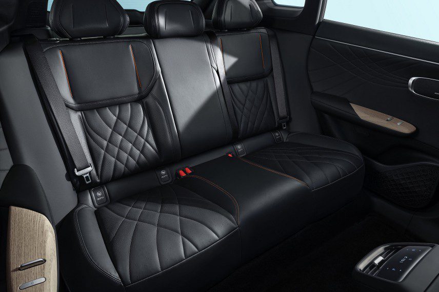 Het basismodel heeft achterwielaandrijving (200 kW); er komt ook een AWD-variant (320 kW) voor wie tractie of trekwerk belangrijk vindt. Die laatste moet het doen met een actieradius van 445 km (WLTP). De ruimte is netjes: 492 liter bagageruimte achterin en een forse frunk (tot 159 liter bij RWD). De wielbasis van 2.880 mm zorgt voor een volwassen zitruimte.