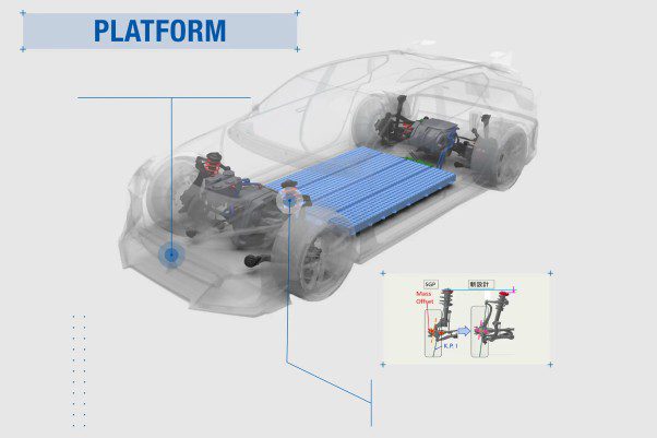 De accu’s bestaan uit cilindrische cellen die extra laag en plat in de bodem zijn geïntegreerd. Daarmee ligt het zwaartepunt ruim 15 procent lager dan bij de huidige generatie, terwijl de interieurruimte behouden blijft. De vierwielaandrijving wordt elektronisch geregeld voor maximale tractie en een voorspelbare balans.
