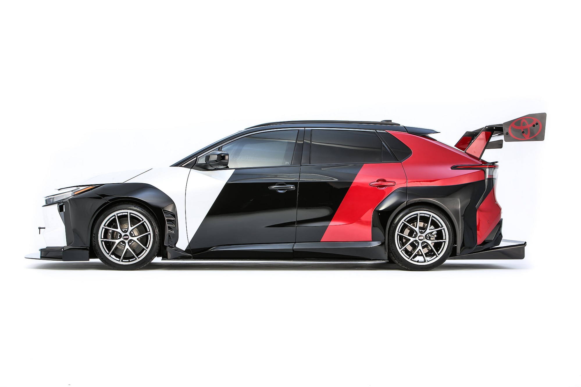 De basis is de vierwielaangedreven bZ4x van modeljaar 2026, maar vrijwel elk onderdeel is aangepast. Volgens het persbericht van Toyota ligt de carrosserie zes inch (15 centimeter) lager, de spoorbreedte groeide evenveel. Het systeemvermogen steeg van 250 kW (338 pk) naar ruim 300 kW, omgerekend zo’n 400 pk. Daarmee stapt Toyota bewust uit zijn comfortzone: deze auto is niet gebouwd om zuinig te zijn, maar om constant scherpe rondetijden te rijden.