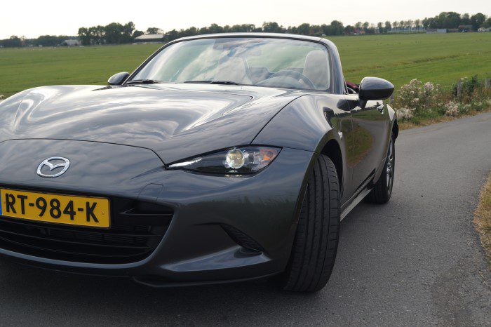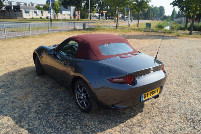 Zodra je in de MX-5 stapt weet je meteen weer dat Mazda een Japanse fabrikant is, de stoelen zijn erg smal en ook maximaal naar achter geschoven blijft de ruimte beperkt (lengte 1.85 m). Daarentegen is de kwaliteit van het interieur erg hoog en zit alles op de juiste plaats. Na het starten van de 131 pk sterke 1,5 liter Skyactiv benzinemotor ben je dankzij het fijne diepe roffeltje uit de dubbele uitlaat meteen weer vergeten dat je wat oncomfortabel zit.