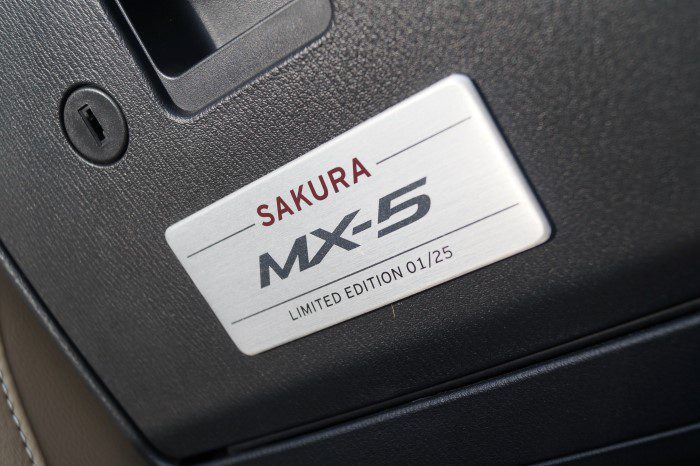 De gelimiteerde Sakura uitvoering die wij reden was de eerste van de in totaal 25 beschikbare Sakura’s die in ons land geleverd worden. Deze uitvoering beschikt onder andere over een donker rood dak, crème ledere bekleding, 16 inch ‘Bright Dark’ lichtmetaal en een batterij aan Bose speakers. De kleur ‘Machine Gray Metallic’ stond de MX-5 in combinatie met het lichte interieur en het rode dak erg goed.