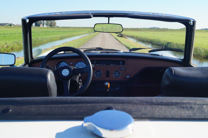 Al bij het starten van onze Spitfire merk je direct een verschil met de MX-5, niks geen startknop die met een simpele druk de motor tot leven wekt. Bij de Spitfire moet er nog gechoked worden om de motor te starten. Wanneer deze dan tot leven komt zie en ruik je meteen dat de emissienorm in die tijd nog maar bijzaak was. Eenmaal op temperatuur is de motor lekker rustig en redelijk stil te noemen. Tuurlijk bezit ook de Spitfire een mooie soundtrack wanneer je het pedaal intrapt. Dankzij onder andere het ontbreken van stuurbekrachtiging en een stuggere koppeling is het wat meer werken achter het stuur. En ook de Engelse staan er niet om bekend dat zij een lang volk zijn, dus ook in de oude stoelen is het comfort niet geweldig te noemen. Wederom weer een punt die onder het kopje ‘lekker belangrijk’ mag verdwijnen aangezien het rijden met de Spitfire echt een genot is.
