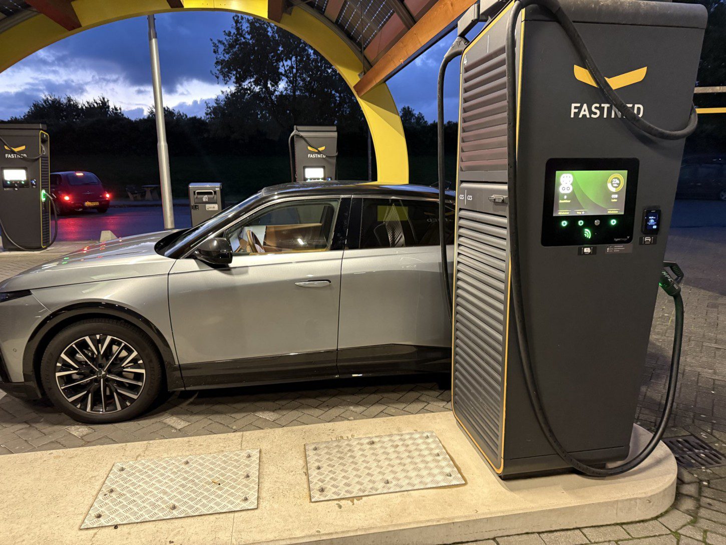 Het laadproces verloopt verder zonder problemen. De informatie op het scherm is duidelijk en de temperatuurregeling van de accu doet zijn werk. Alleen de software reageert wat traag. Het navigatiesysteem vraagt wat geduld bij het zoeken of wijzigen van een route, en dat past niet helemaal bij de moderne uitstraling van de auto. Functioneel werkt het goed, maar het tempo mag hoger.