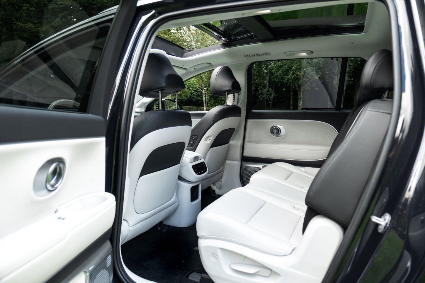 Qua buitenmaten ontlopen de drie elkaar niet veel. De IONIQ 9 is met 5,06 meter nét de langste. Opvallender is de wielbasis: Hyundai en Kia hebben rond de 3,10 meter tussen de assen, waar Volvo’s EX90 met minder dan 3 meter aanzienlijk korter is. Dit vertaalt zich in binnenruimte. De IONIQ 9 en EV9 bieden allebei een zeer royaal interieur, met veel beenruimte op de tweede en derde zitrij. In de IONIQ 9 kunnen dankzij de vlakke vloer volwassenen zich zelfs op de derde rij nog redelijk nestelen. Kia’s EV9 heeft vergelijkbaar veel binnenruimte; als optie is die zelfs als zészitter leverbaar voor extra doorgang. Volvo heeft vanaf 2026 ook een zitsconfiguratie met zes stoelen aan in de EX90, juist om de toegang tot achterin te verbeteren. Dat hint er al naar: de EX90’s derde zitrij is krapper. Een volwassen persoon kan er voor korte ritjes zitten, maar de beenruimte en instap zijn duidelijk beperkter dan bij de andere twee. De EX90 voelt meer als een 5+2, waar de IONIQ 9 en EV9 echt volwaardige 7-zitters beogen te zijn.
