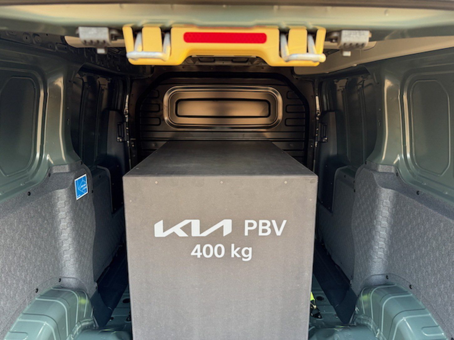 De PV5 heeft in zijn segment een flink formaat laadruimte. De laadvloerhoogte is extreem laag (slechts 419 mm). Dat is een hoogte die ik nog niet eerder ben tegengekomen. Om dat voor elkaar te krijgen heeft Kia speciaal voor deze bestelauto een platform ontwikkeld, genaamd E-GMP-S. Ze hebben dus niet een bestaand platform van en personenauto gebruikt. Dat kan ook niet, gezien het gewicht wat de besteller mee moet torsen.
