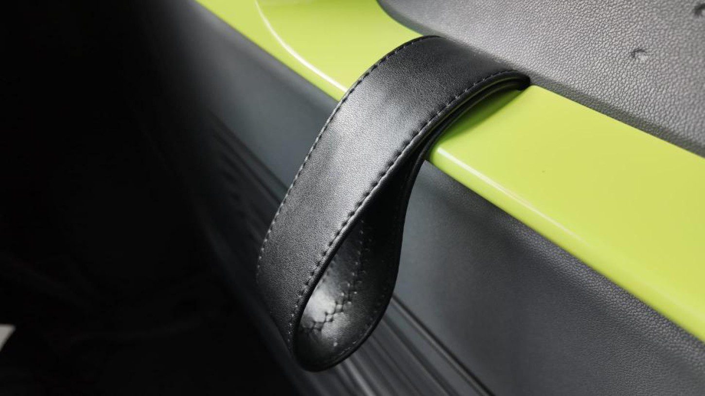 Luxe details vind je er overigens wel terug: er is airco en een hele sterke verwarming. Elektrische ramen die na één klik volledig openen. Leuk detail van het interieur zijn de lederen bandjes waarmee je de deuren opent en sluit, doet ons denken aan een Porsche 911 GT3. Verder zijn de spiegels elektrisch te bedienen en is hill-start assist ook van de partij.