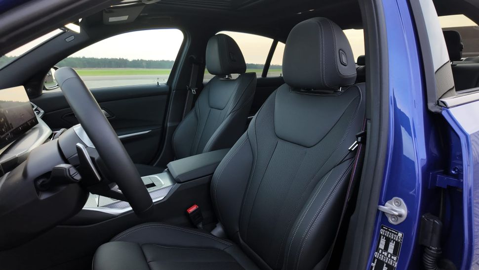 Het stuurwiel is gelukkig niet overdreven dik, iets waar BMW’s volbloed M-modellen zich nog wel eens schuldig aan maken. De besturing zelf is voorbeeldig gekalibreerd: precies genoeg gewicht, nooit log en nooit licht. In de rijmodi valt dat nog iets bij te stellen, maar eerlijk gezegd voelt de standaard Comfort-instelling al als de juiste keuze.