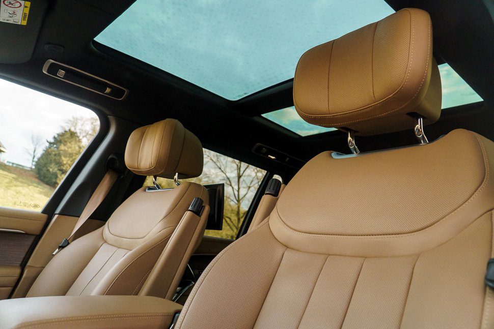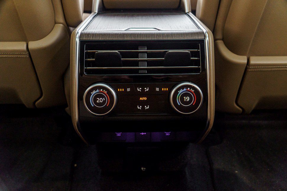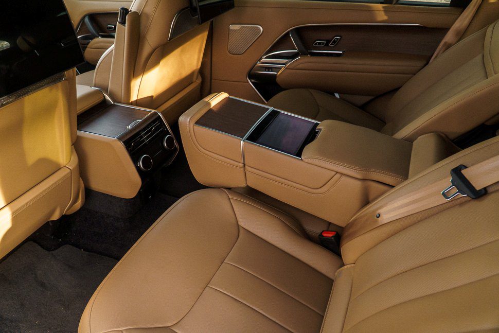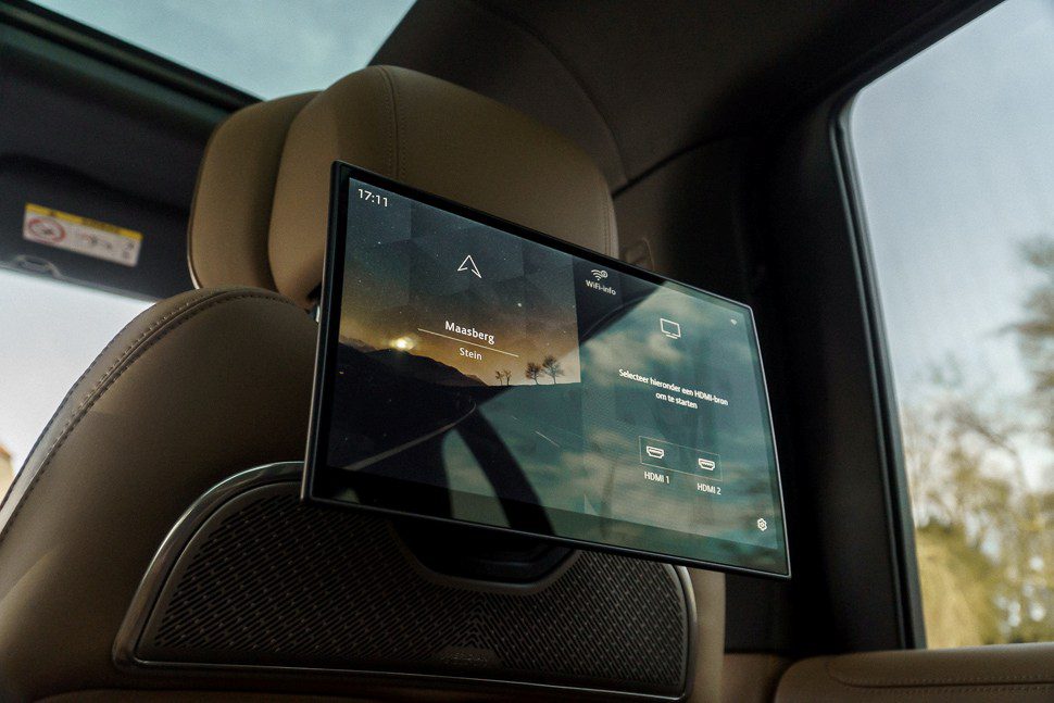 Nu begint de lol pas echt. Ik heb mij natuurlijk ook laten vervoeren als een fabrieksdirecteur achterin de Range. We vinden daar twee megaluxe stoelen die van alle gemakken voorzien zijn. Massage? Natuurlijk. Volledig neerklappende rugleuning met voetensteunen? Uiteraard. Verkoeling én verwarming? Zonder twijfel. Er is zelfs een glazen panoramadak en twee televisies waaraan je oprecht je Playstation of andersoortig multimedia-apparaat kan aansluiten. Er is namelijk niet alleen een volwaardig stopcontact achterin, maar ook nog eens een HDMI-aansluiting.