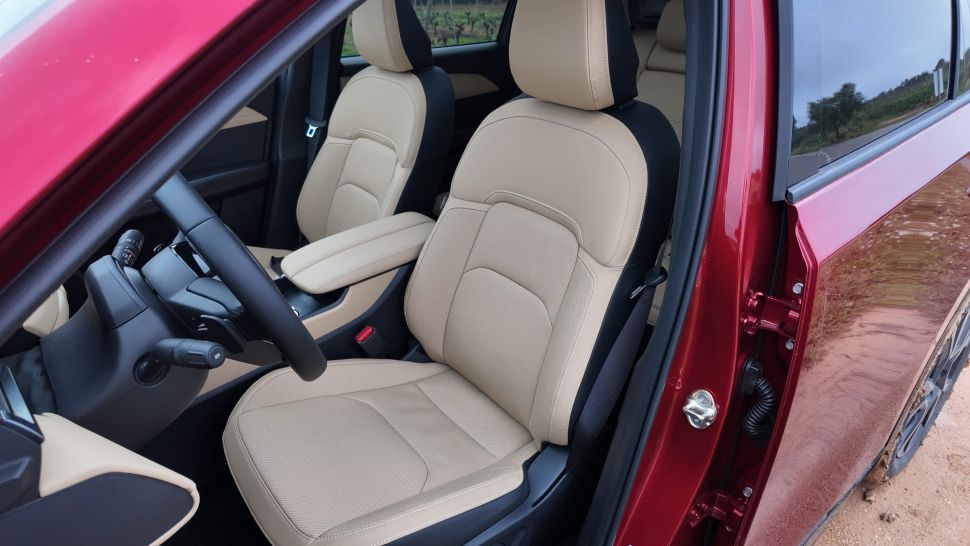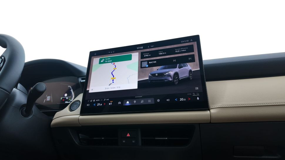 In het midden van het dashboard staat bovendien een nieuw infotainmentscherm. Standaard meet dat 12,9 inch, maar zodra men de keuze laat vallen op de Homura groeit dat tot 15,6 inch, met ingebouwde Google-diensten. Navigatie via Google Maps zit er dus meteen in, net als spraakbediening, terwijl Apple CarPlay en Android Auto ook gewoon blijven werken. Iedereen tevreden.