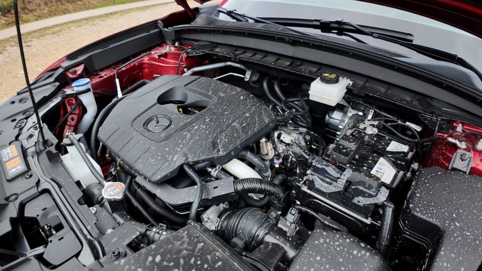 Niet verrassend voor een atmosferische motor is dat het beschikbare vermogen op een soepele manier op de wielen wordt overgebracht. Hier is dat dan ook niet anders. Het riante blok wordt geholpen door een 24-volt hybridesysteem dat de 2,5-liter motor ondersteunt en zo goed is voor een lagere uitstoot op papier. Daar hoort volgens Mazda een verbruik van 7 liter per 100 kilometer bij.