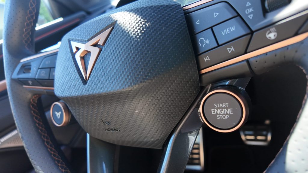 Afijn alles heeft een nadeel. We schreven al dat de stuurinrichting in de Cupra Terramar een erg lichte is. Bij dat stuur blijven we even. Zeker voor een auto waarbij je al het andere tot in de oneindigheid in kan stellen valt op hoe “beperkt” de stuurverstelling is. Opvallend is de mate waarin het stuur naar je toe komt. Het is te verstellen in die dimensie maar niet al te veel. je rijdt dus al snel met erg gestrekte armen, wat zeker op langere stukken geen voorkeur heeft.