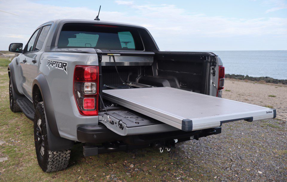 Op papier klinkt een pick-up met een bi-turbo 2-liter viercilinder diesel met 213pk niet echt indrukwekkend. Een koppel van 500Nm klinkt al beter. Echt indrukwekkend is de Ford Ranger Raptor pas als hij voor je staat. Bijna 5,5 meter lang is hij, en iets meer dan 2 meter breed. Met zijn hoogte van 1 meter 82 is hij hoger dan menig bestelbusje. In zijn laadbak mag hij 650 kilo tillen, en hij mag 2500 kilo trekken.