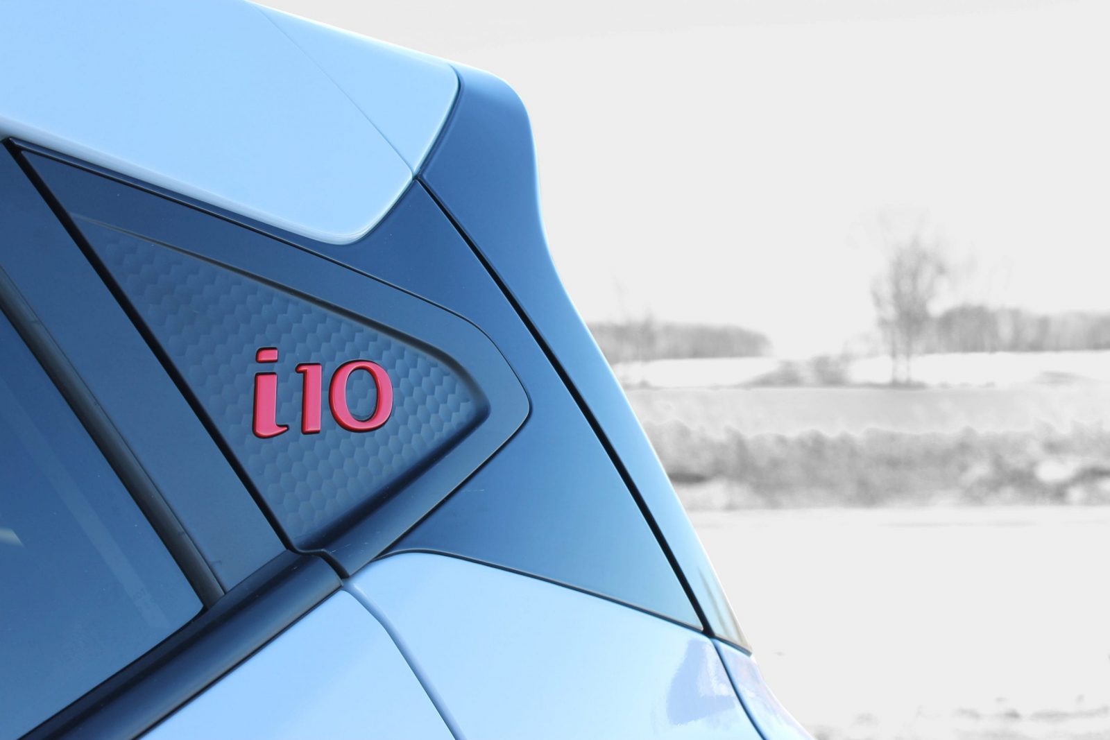 Het N-Line pakket is de absolute topversie van de nieuwe Hyundai i10. Voor €20.535 is de sportieve versie niet alleen het snelst, maar ook het meest compleet uitgeruste model. Het vermogen is gestegen van 67 pk, naar een turbo aangedreven 100 pk. Ook is de auto met 5 mm gegroeid in vergelijking met de standaard versie. Dit komt door de agressieve N-Line bumpers die de i10 zijn sportieve look geven. De fabrieksmedewerkers zijn druk bezig geweest met rode verf. Onder iedere hoek is er wel een rood sierdeel dat afsteekt tegen de grijsblauwe Slate Blue lakkleur. De i10 N-Line verbergt zijn sportieve intenties dus niet.