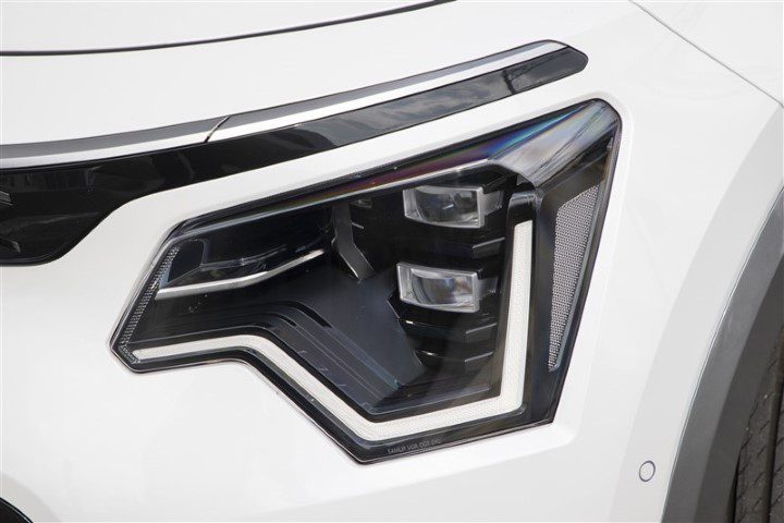 Het uiterlijk van deze nieuwe Niro is niet revolutionair, maar het predicaat saai kun je het niet meer geven. De laadaansluiting zit weer in de neus, een plek waar weinig mis mee is. Het betekent wel dat je vooruit dient in te parkeren. De 204 pk sterke elektromotor en aandrijving liggen allemaal onder de motorkap. Dus op deze manier heb je dat soort zaken allemaal bij elkaar, wat kabels en gewicht scheelt. Nadeel van een neusaansluiting is dat bij een kop-staart ongeluk de schade aanzienlijker is. Maar de veiligheidssystemen proberen die situatie te voorkomen. Qua veiligheidssystemen zijn er wel een aantal afkortingen bij gekomen. De Niro is onderhand zo veilig, dat ik alleen hierover al een epistel zou kunnen schrijven.