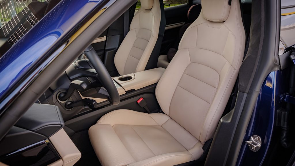 De achterkant met lichtlijn die de achterlichten met elkaar verbindt en een paar lucht in- en uitlaten. Een paar maar… omdat de neus met zijn tekort aan luchtinlaten duidelijk verklapt dat er geen motor voorin ligt zoals zijn Panamera broertje. In het vooronder wel ruimte voor 81 liter aan boodschappen. Voor de non-EV-rijders onder ons, dat heet tegenwoordig de ‘frunk’, front-trunk.