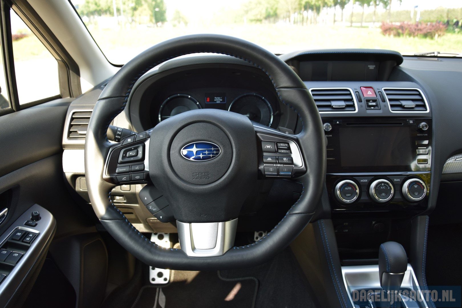 Neem een kijkje aan de binnenkant van de Levorg, en je ziet dat er gebruik gemaakt is van hoge kwaliteit materialen. Het dashboard is overzichtelijk, terwijl de stoelen, pookknop en het stuurwiel zijn voorzien van fraaie blauwe stiksels. Het stuur ligt lekker stevig in de hand, al zijn er veel kleine knoppen op aanwezig. Graag hadden we alleen de meest hoofdzakelijke functies voor onder het rijden gezien. De stoelen bieden uitstekend comfort en zijn eenvoudig elektrisch af te stellen.